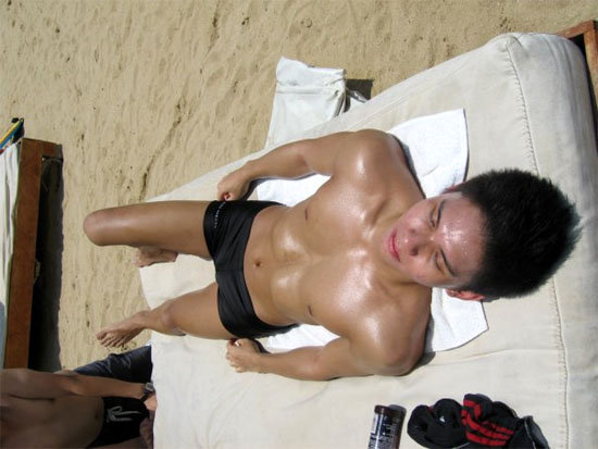 b) Swimming & Tanning -- Seriously, you dun even think about giving eye contact to a hunky boy tanning next to you in a skimpy red swim trunk! - He might be straight, ya'know!!!